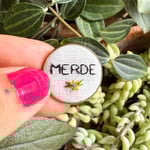 Brodée à la main et avec amour sur du coton bio, cette broche mesure 2 cm de diamètre.