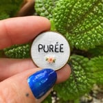 Brodée à la main et avec amour sur du coton bio, cette broche mesure 2 cm de diamètre.