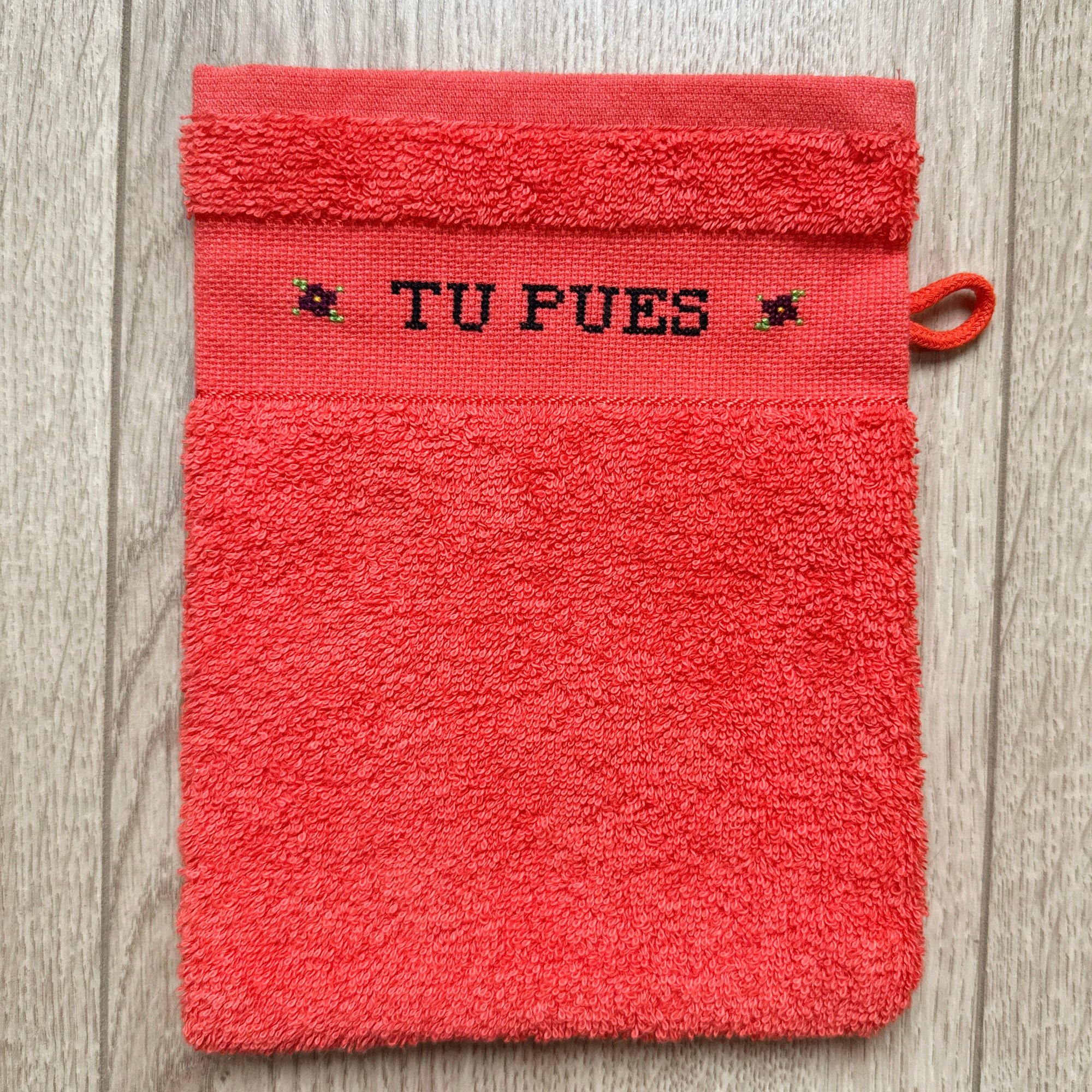 Brodé à la main sur un gant en coton orange