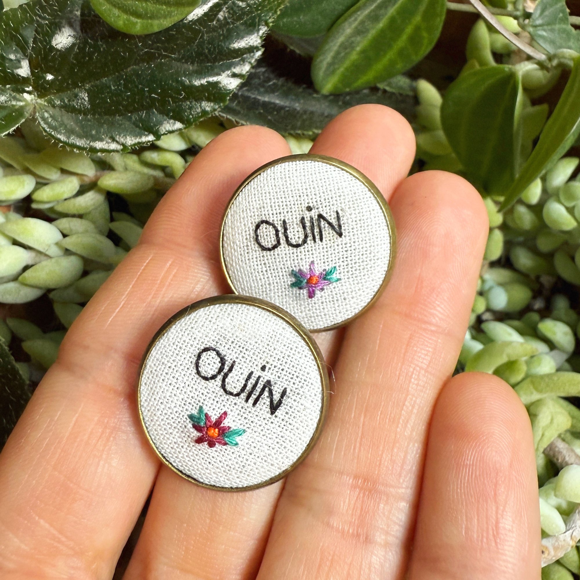 Brodées à la main et avec amour sur du coton bio, ces broches mesurent 2 cm de diamètre chacune. Elles sont vendues par paire.