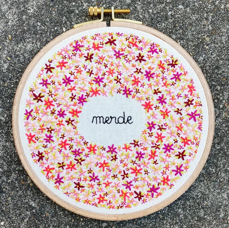 Brodé sur du coton bio, encadré dans un tambour de 15 cm de diamètre.