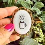 Brodée à la main et avec amour sur du coton bio, cette broche mesure 3 x 4 cm.